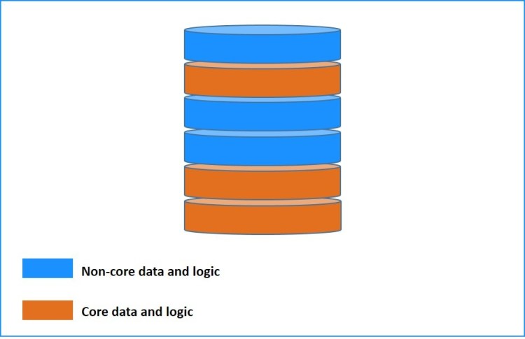 Moving non-core data and logic out of the main database and into separate databases helps to make the core database less complex, and more amenable to human understanding. This both reduces fear around database changes and reduces the number of possible failure states for database changes! Reducing the size of databases by taking out accidental data then has the double benefit of reducing the hardware requirements to run the databases (potentially even allowing a technology change), and allowing more rapid and frequent upstream testing.