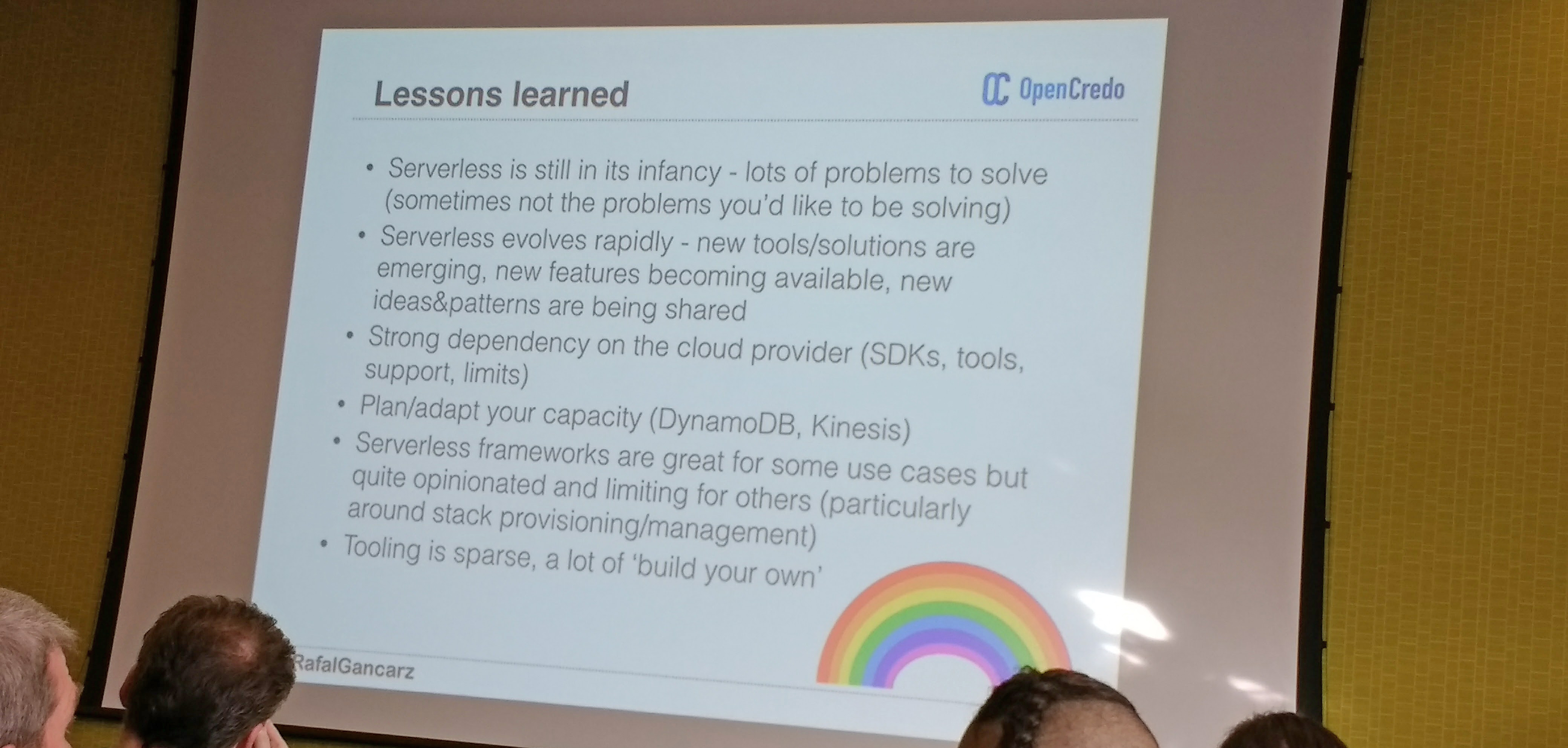 The talk from Rafal Gancarz of OpenCredo covered experiences around Serverless for the Enterprise, or as Rafal described it – AKA “Serverless in the Real World”.