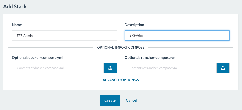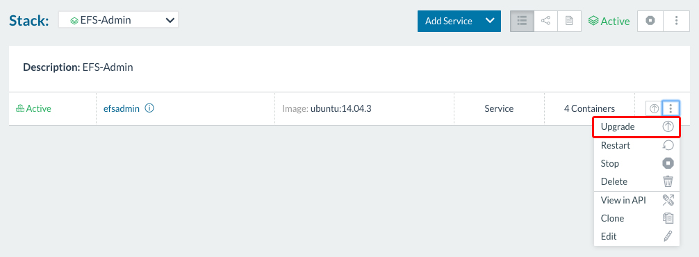 Access the upgrade service for the stack you wish to mount to EFS, in our example this is the EFS-Admin stack we created in the previous stage (Fig:13)
