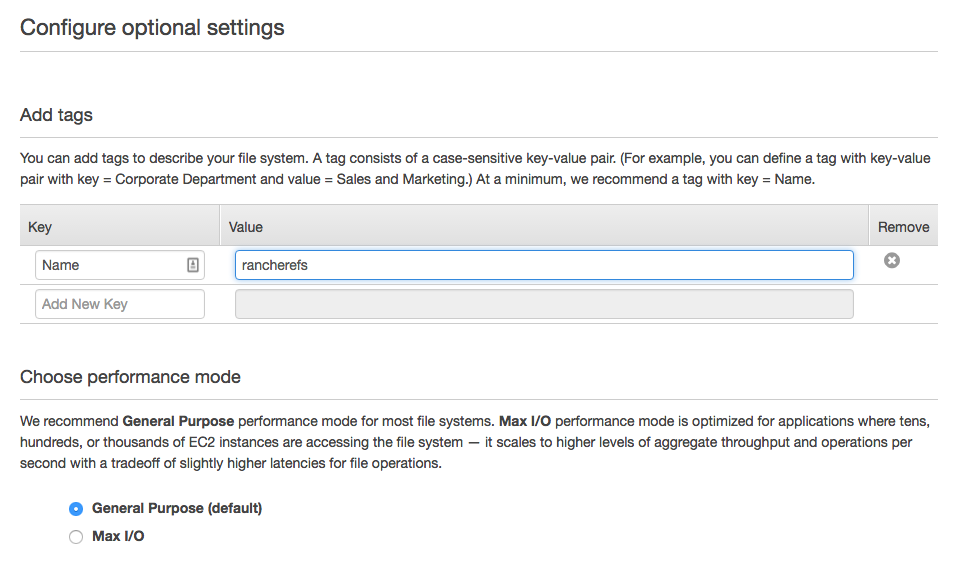 *NOTE* – At the time of writing AWS EFS is only supported in the following regions: US-East (N.Virginia), US-East (Ohio), US-West (Oregon) and EU-West (Ireland).