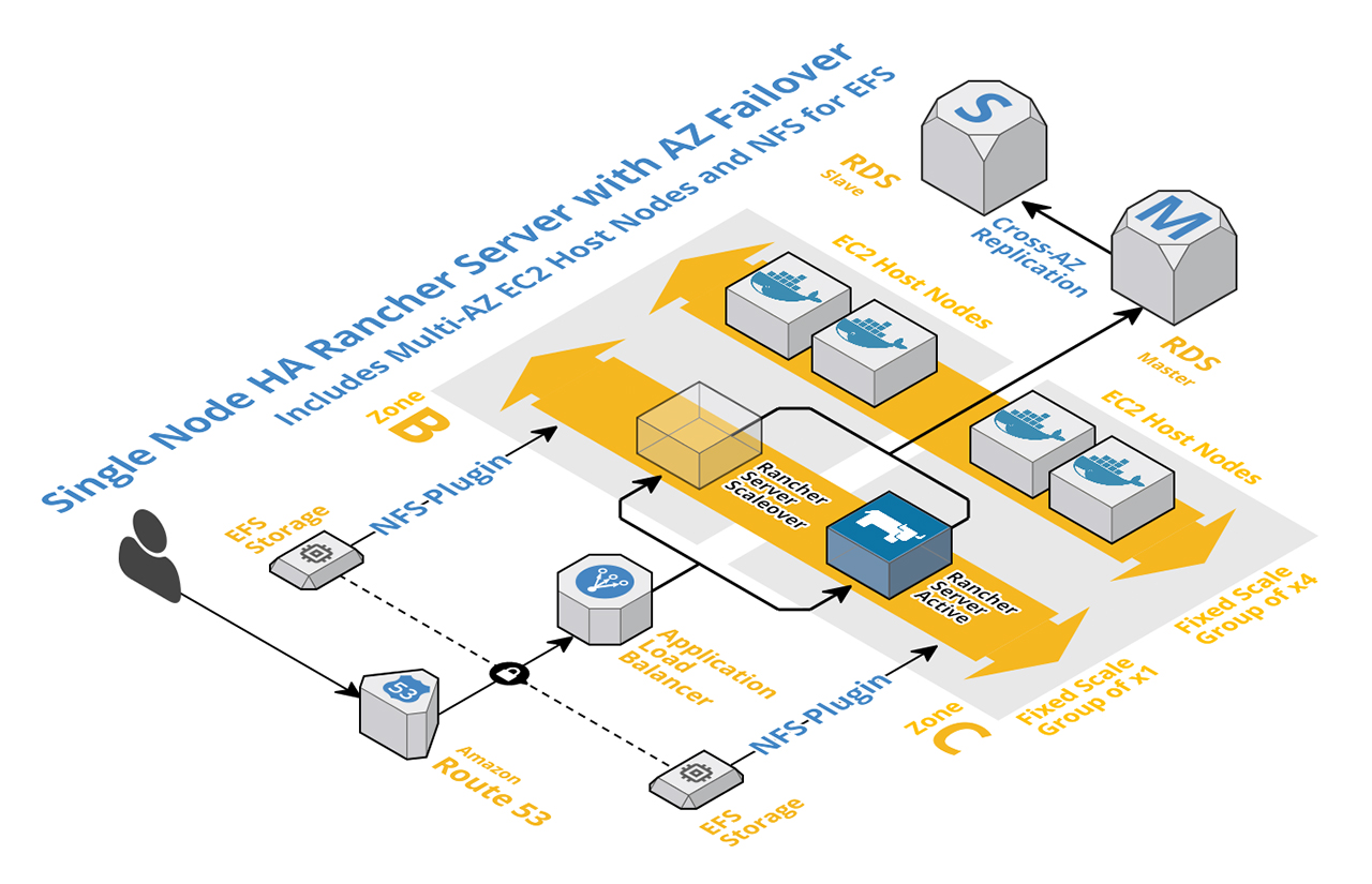 This is the third post in an on-going series exploring Rancher Server deployment, configuration and extended use. In the last post I detailed how to implement single node resilience in AWS for Rancher Server. In this post, we will add an extra level of HA by configuring an AWS EFS volume for shared storage and mounting it using the Rancher-NFS service. By using EFS to maintain data consistency the storage component is preserved outside of the Rancher environment, whilst mounting it using Rancher-NFS delivers zone resilience. Content is aimed at those familiar with AWS concepts and terminology and is best viewed from a desktop or laptop.